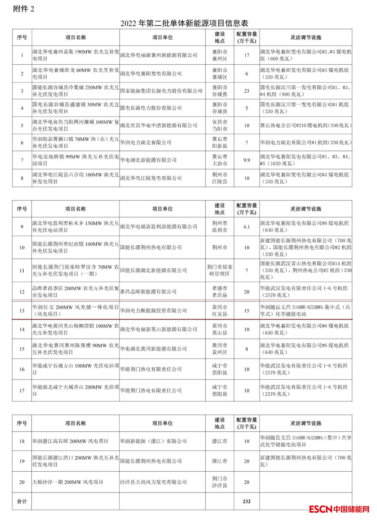 中國儲能網(wǎng)訊:近日,湖北省能源局公布了2022年第二批納入建設(shè)規(guī)模管理的新能源發(fā)電項(xiàng)目名單,此次公布的: