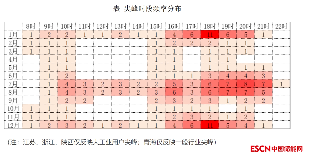 綜合各地分月度、分小時(shí)尖峰電價(jià)信息發(fā)現(xiàn),7-8月的16:00-22:00,以及12-1月的17:00-21:00是設(shè)置尖峰時(shí)段相對(duì)集中的時(shí)段,其中又以1月和12月的18:00-19:00最為突出,22個(gè)設(shè)置了尖峰時(shí)段的地區(qū)中有一半都在兩個(gè)小時(shí)劃分尖峰。