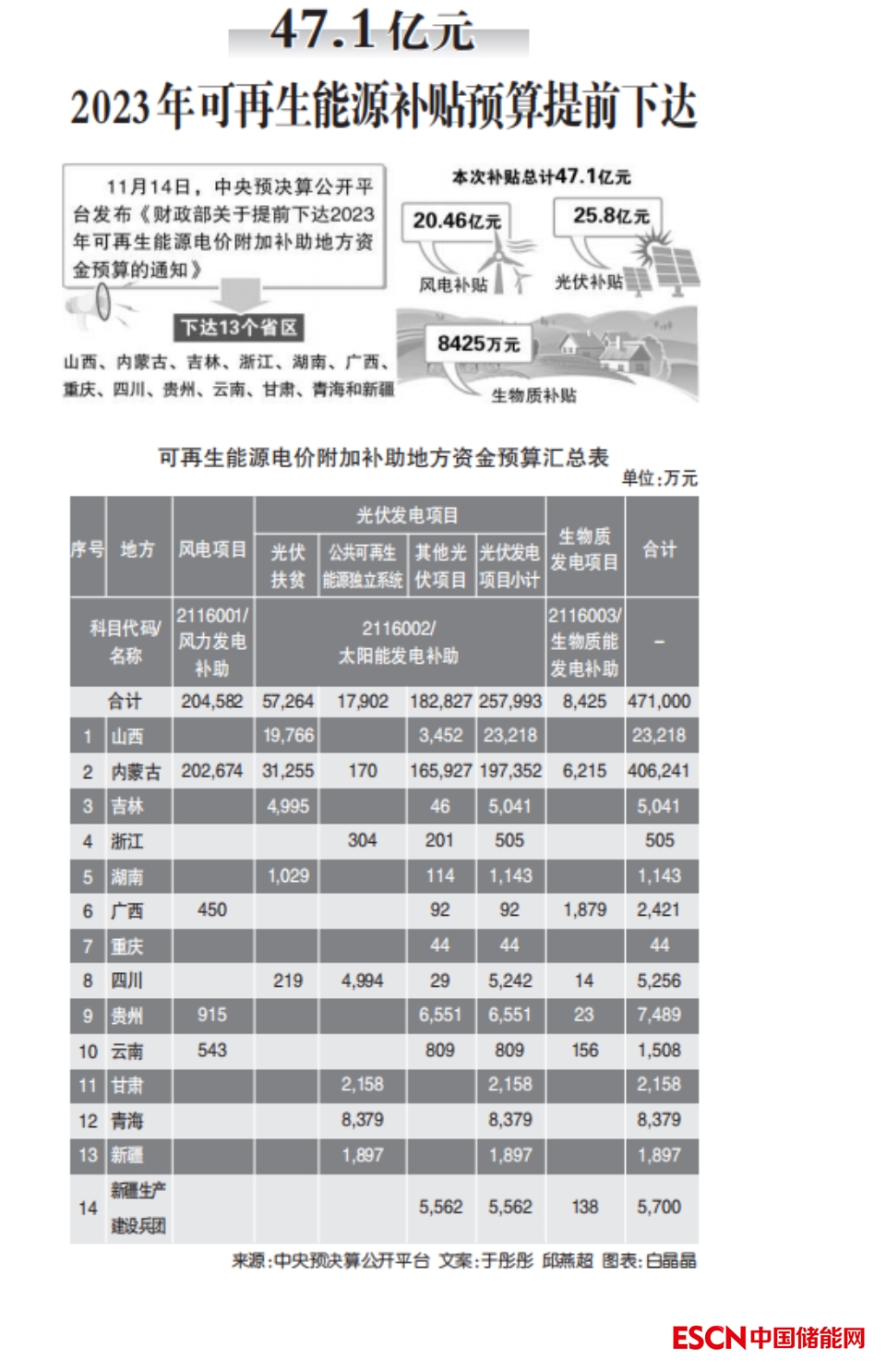 2023年可再生能源補(bǔ)貼預(yù)算提前下達(dá)
