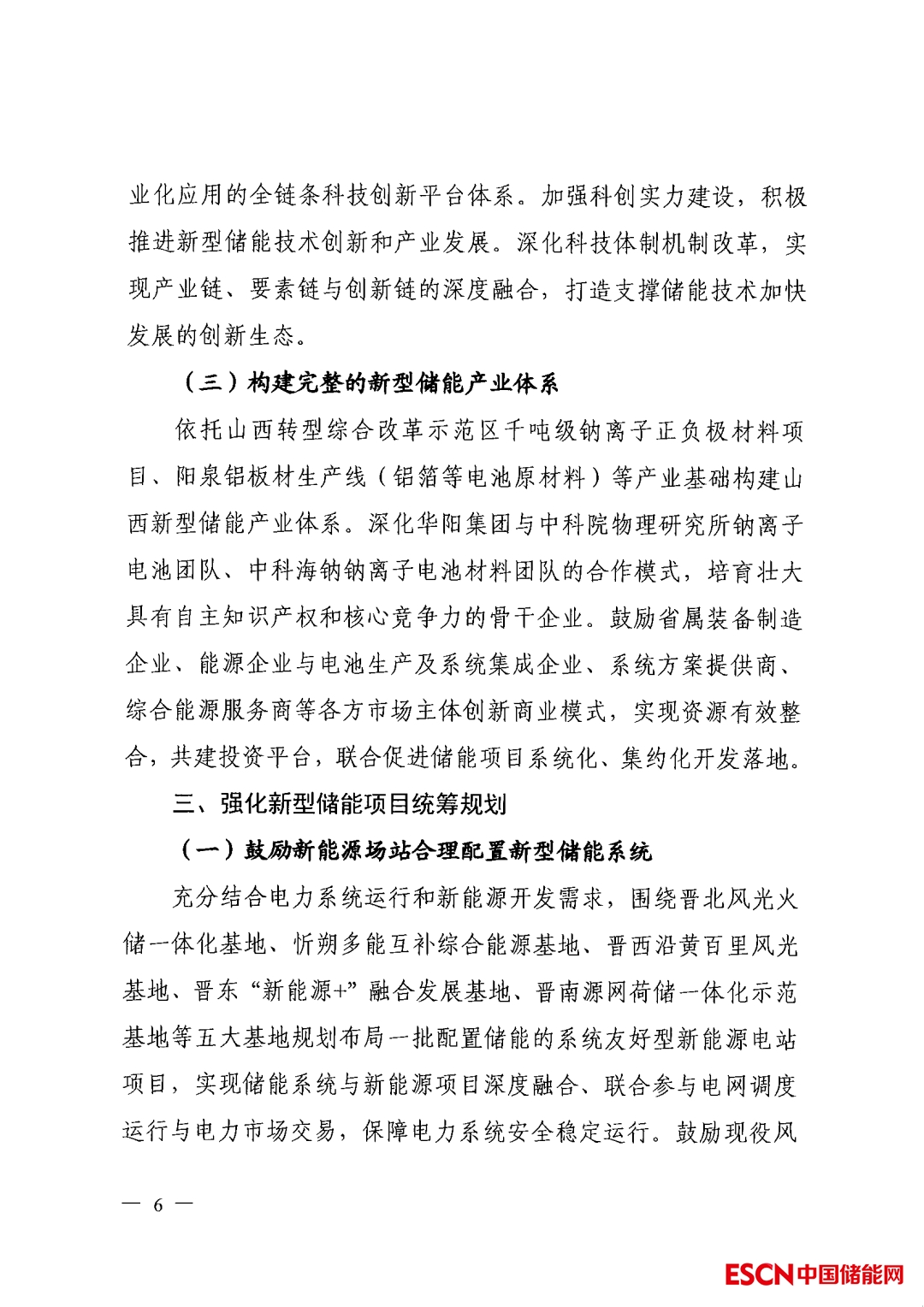 中國儲能網訊:近日,山西省能源局發(fā)布了《“十四五”新型儲能發(fā)展實施方案》。其中,文件表示,到2025年新型儲能規(guī)劃容量達到6GW。重點在五大基地規(guī)劃布局一批配置儲能的系統(tǒng)友好型新能源電站項目;在陽高、天鎮(zhèn)等13個區(qū)縣集中布局大容量新型儲能電站;在太原、運城等負荷密集區(qū)域布局集中式新型儲能電站。在大同采煤示范區(qū)、太忻一體化經濟區(qū)、晉西沿黃百里風光基地,開展多能互補和源網荷儲一體化試點示范。
