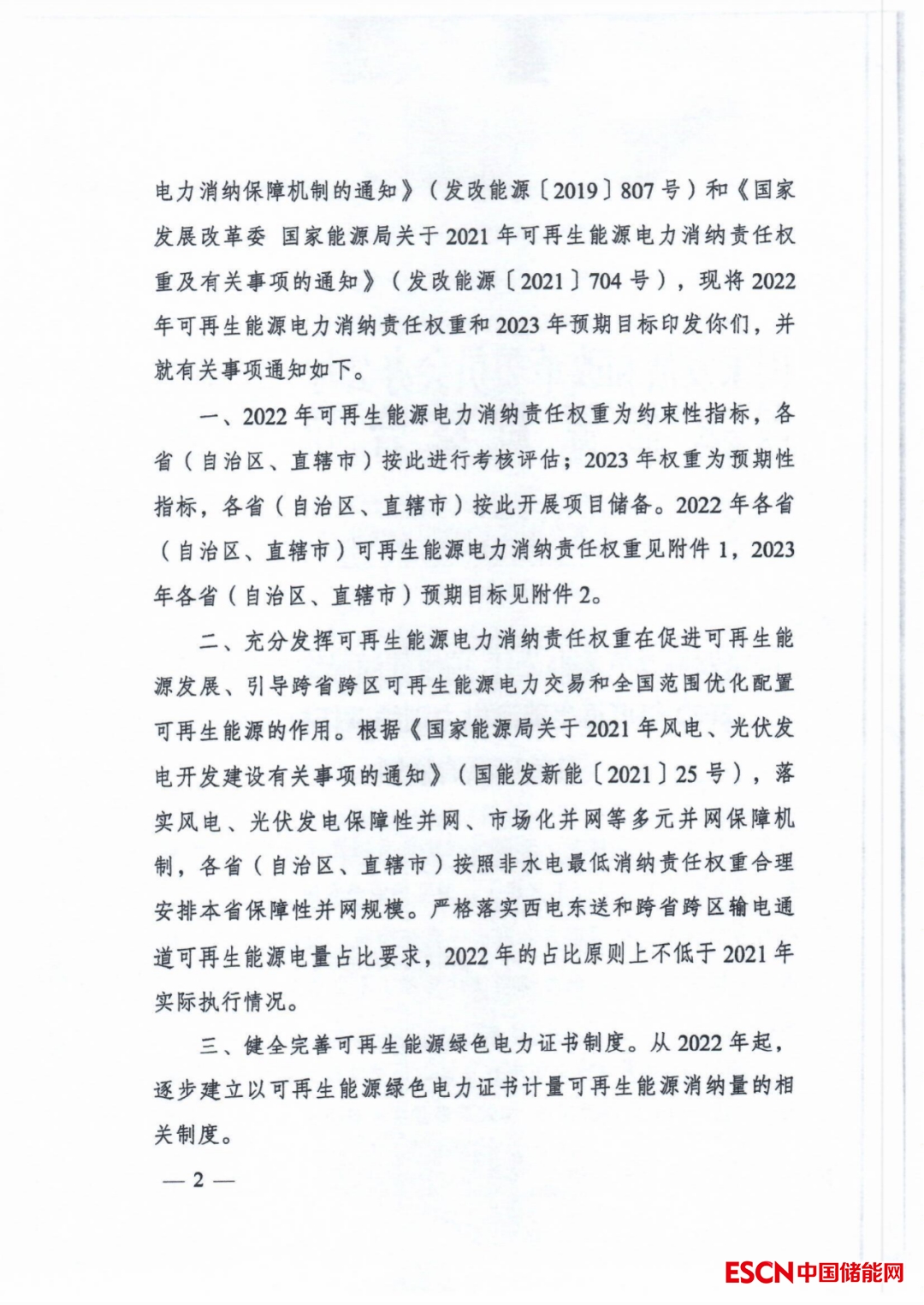 與此同時,該申報通知中附了《國家發(fā)展改革委辦公廳國家能源局綜合司關于2022年可再生能源電力消納責任權重及有關事項的通知》,明確各省2022年可再生能源電力消納責任權重以及2023年再生能源電力消納責任權重預期目標。