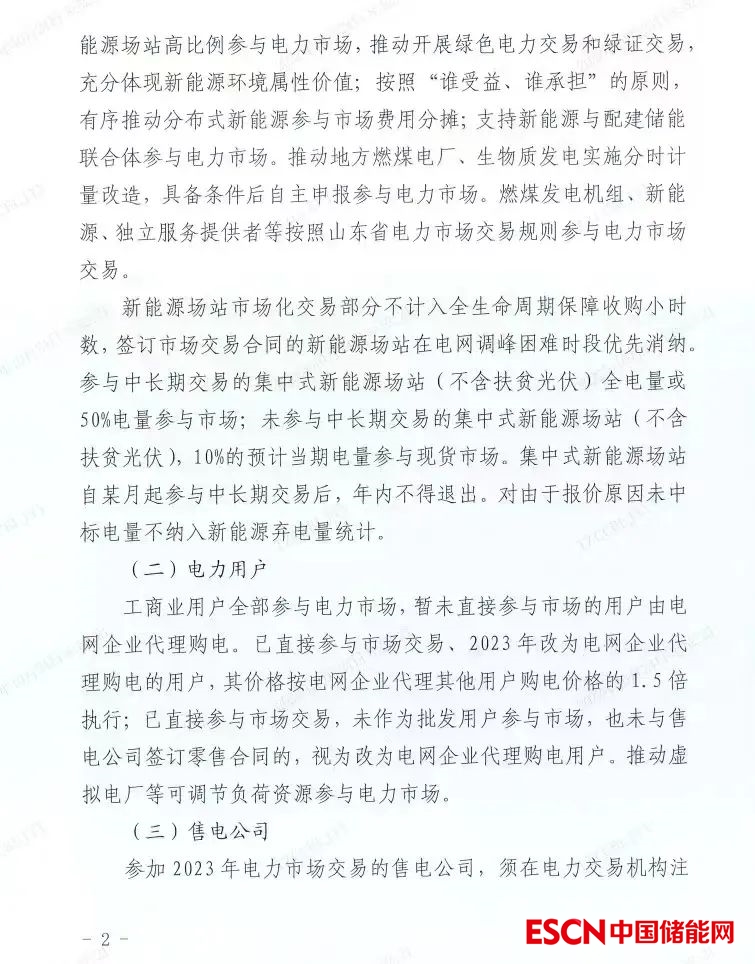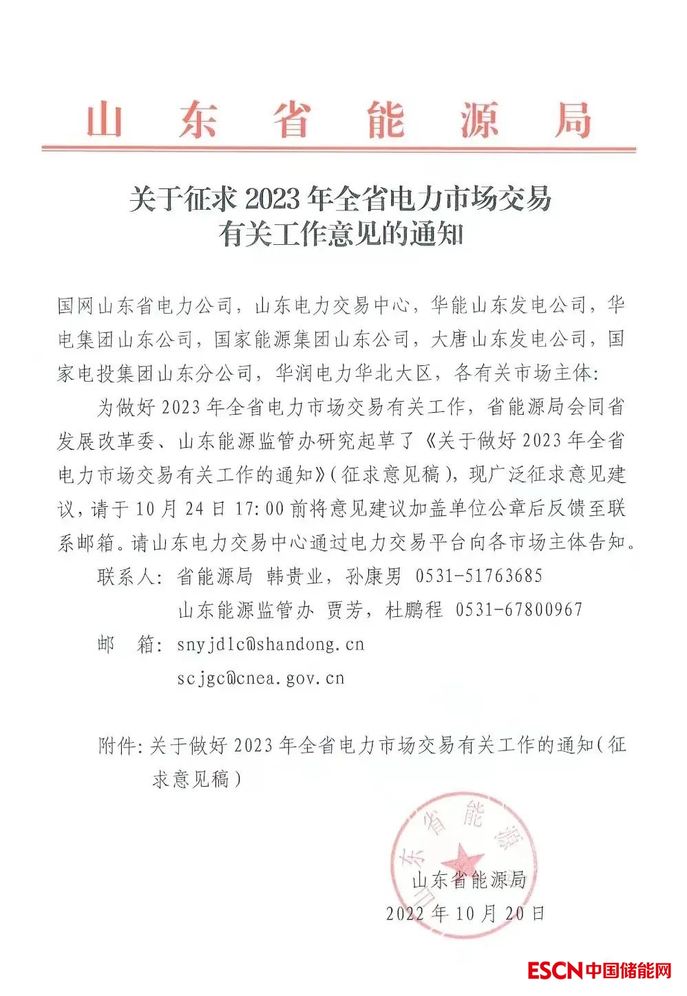 中國儲能網(wǎng)訊:10月20日,山東省能源局發(fā)布《關(guān)于征求2023年全省電力市場交易有關(guān)工作意見的通知》。