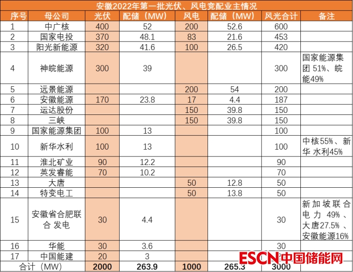 值得注意的是,在此前,安徽省已經(jīng)下發(fā)了《關(guān)于2022年第一批次風(fēng)電和光伏發(fā)電項目開發(fā)建設(shè)方案》,確定了光伏2GW、風(fēng)電1GW項目;隨后7月4日安徽省又追加了追加風(fēng)電和光伏發(fā)電項目建設(shè)規(guī)模200萬千瓦,其中風(fēng)電項目100萬千瓦、光伏項目100萬千瓦(安徽:第一批3GW基礎(chǔ)上再追加1GW光伏+1GW風(fēng)電建設(shè)規(guī)模)。第一批項目業(yè)主情況如下: