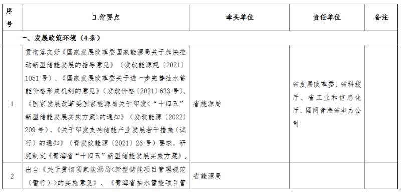 附件:青海省國(guó)家儲(chǔ)能發(fā)展先行示范區(qū)行動(dòng)方案2022年度工作要點(diǎn)任務(wù)清單