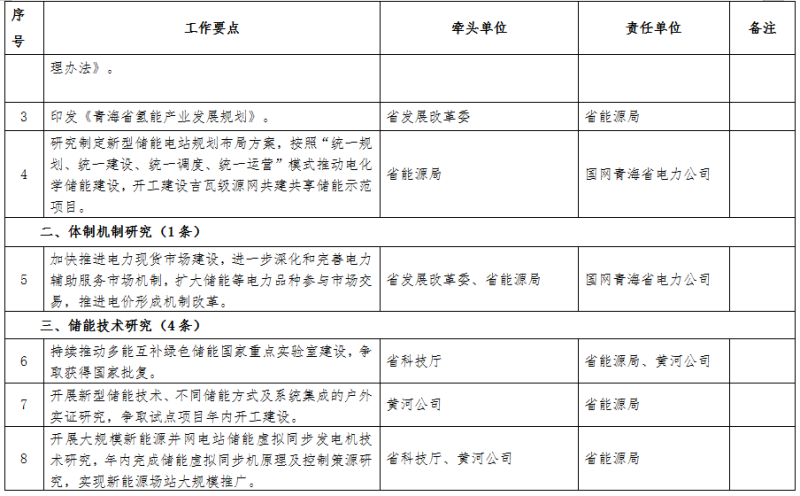 青海省國(guó)家儲(chǔ)能發(fā)展先行示范區(qū)行動(dòng)方案2022年工作要點(diǎn)