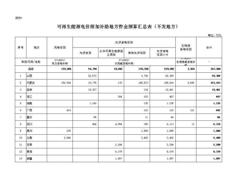 1.可再生能源電價附加補助地方資金預算匯總表(不發(fā)地方)