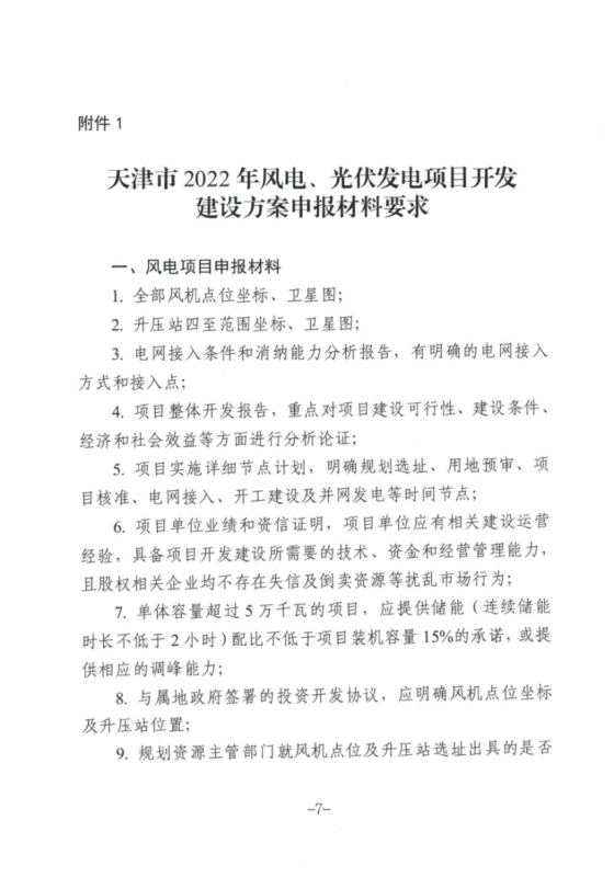 根據(jù)此前2021年6月7日,天津市發(fā)布的《關(guān)于做好我市2021-2022年風(fēng)電、光伏發(fā)電項目開發(fā)建設(shè)和2021年保障性并網(wǎng)有關(guān)事項》的文件中,風(fēng)電項目不低于15%,(連續(xù)儲能時長不低于1小時,下同)光伏發(fā)電項目承諾儲能配比不低于項目裝機(jī)容量的10%。