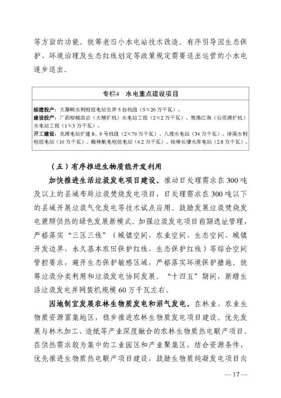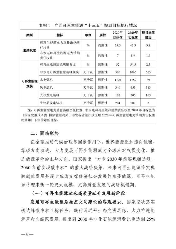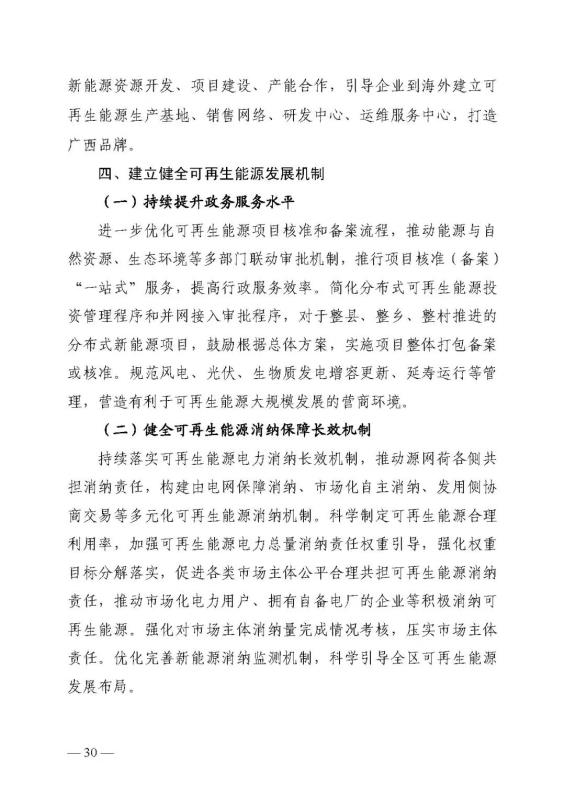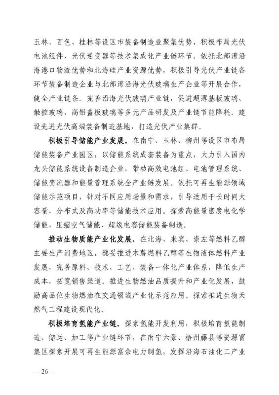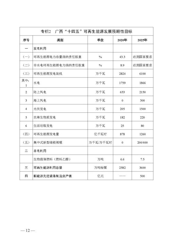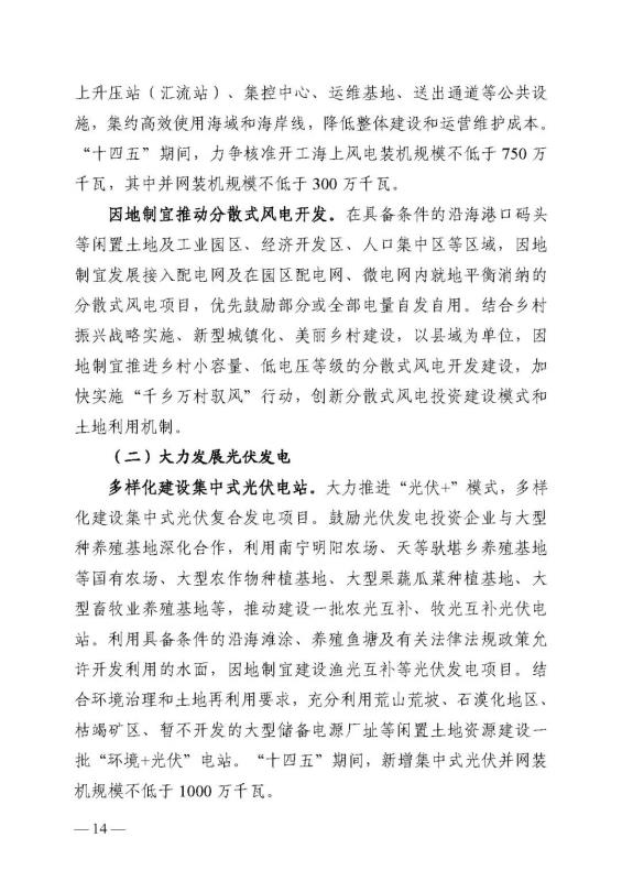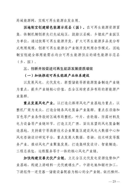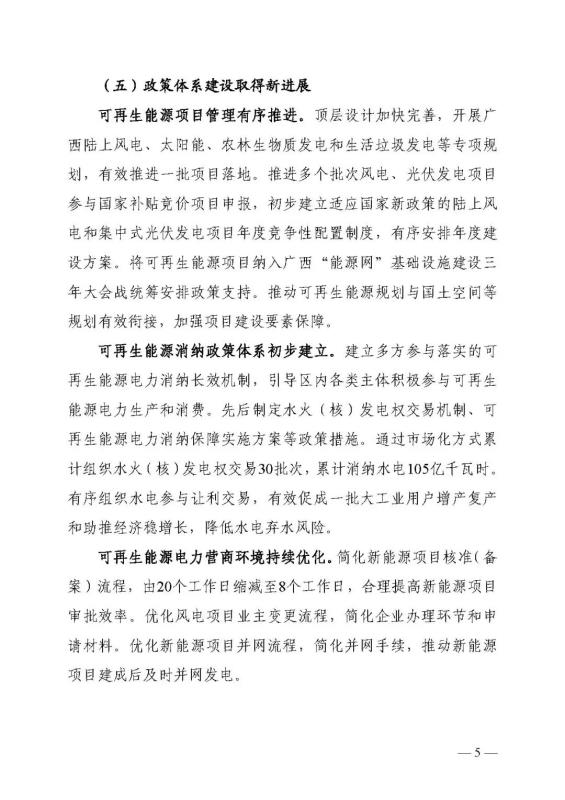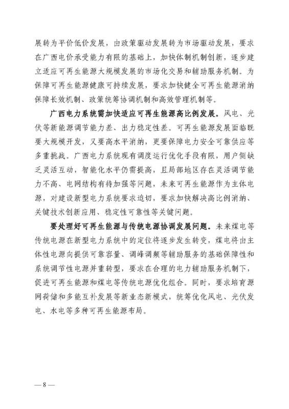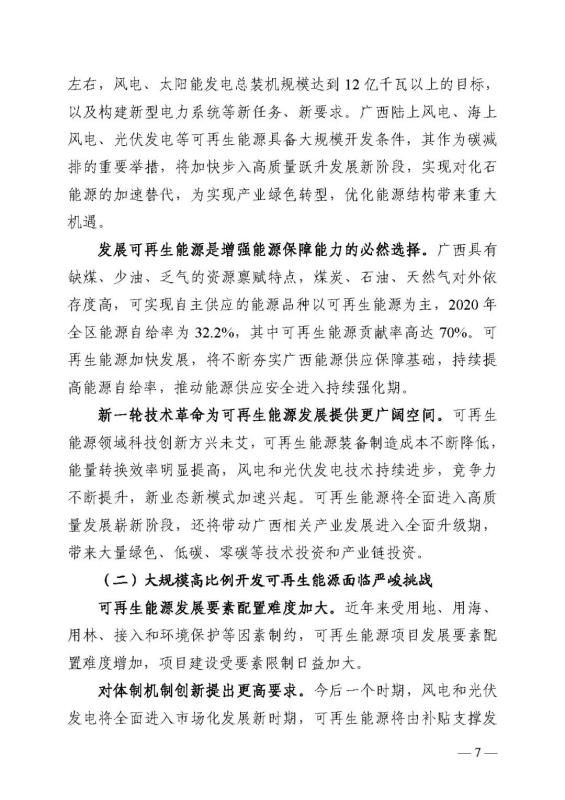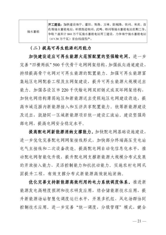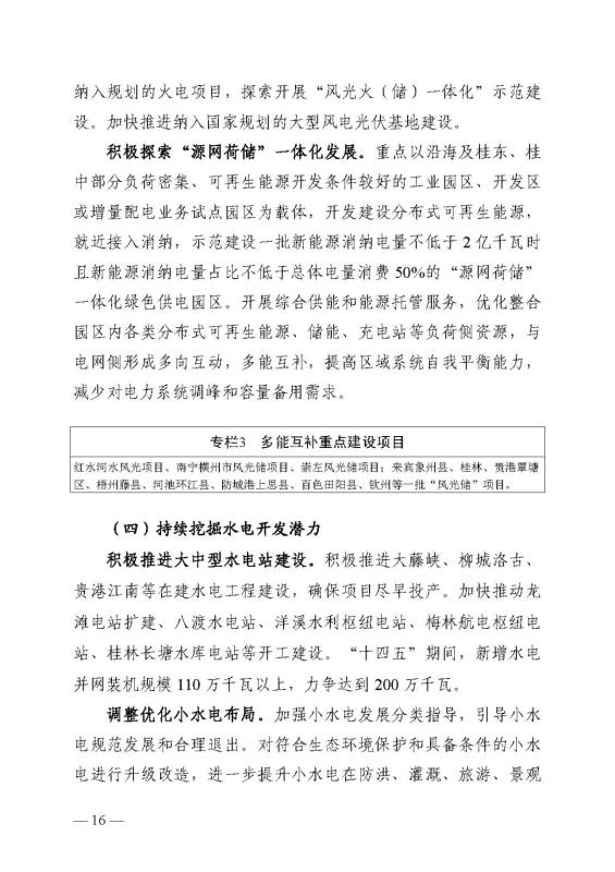 十四五期間在桂北、桂東、沿海等新能源資源開(kāi)發(fā)較有利區(qū)域,重點(diǎn)推進(jìn)一批“風(fēng)光儲(chǔ)一體化”項(xiàng)目建設(shè)。依托存量火電機(jī)組靈活性改造及納入規(guī)劃的火電項(xiàng)目,探索開(kāi)展“風(fēng)光火(儲(chǔ))一體化”示范建設(shè)。加快推進(jìn)納入國(guó)家規(guī)劃的大型風(fēng)電光伏基地建設(shè)。