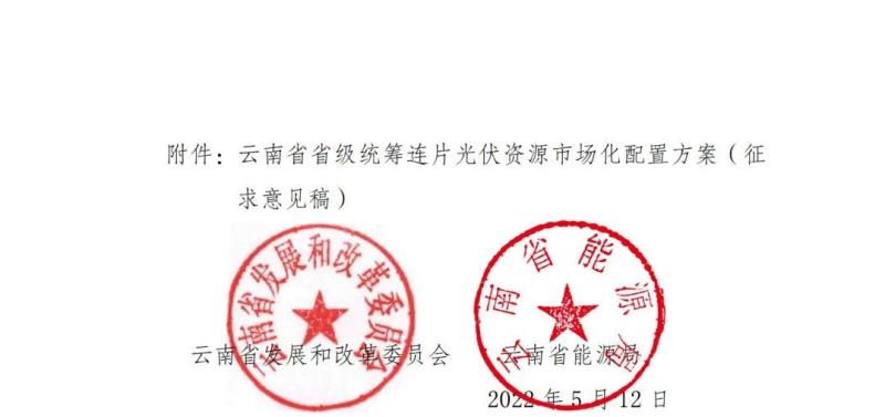 中國儲能網(wǎng)訊:5月12日,云南省發(fā)展和改革委員會、云南省能源局就《云南省省級統(tǒng)籌連片光伏資源市場化配置方案》征求意見,要求于2022年5月16日12:00前上報。