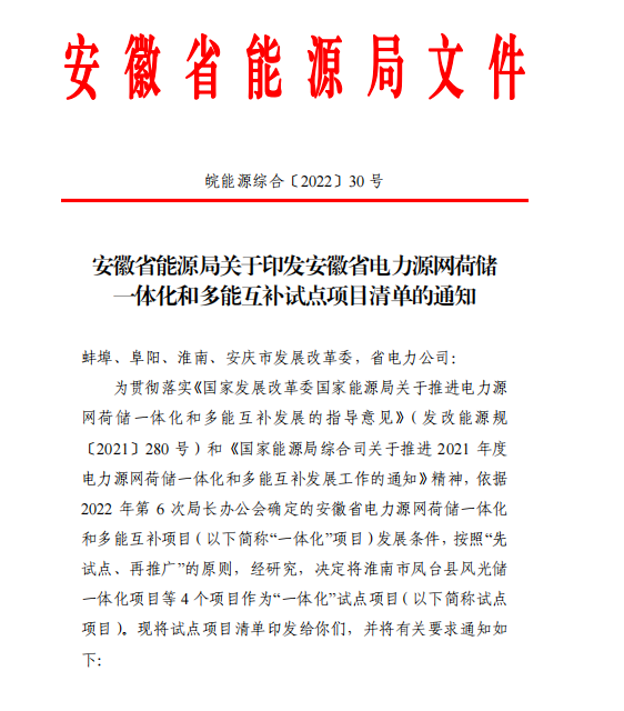 中國(guó)儲(chǔ)能網(wǎng)訊:近日,安徽省能源局關(guān)于印發(fā)安徽省電力源網(wǎng)荷儲(chǔ)一體化和多能互補(bǔ)試點(diǎn)項(xiàng)目清單的通知將淮南市鳳臺(tái)縣風(fēng)光儲(chǔ)一體化項(xiàng)目等 4 個(gè)項(xiàng)目作為“一體化”試點(diǎn)項(xiàng)目(以下簡(jiǎn)稱試點(diǎn)項(xiàng)目)。