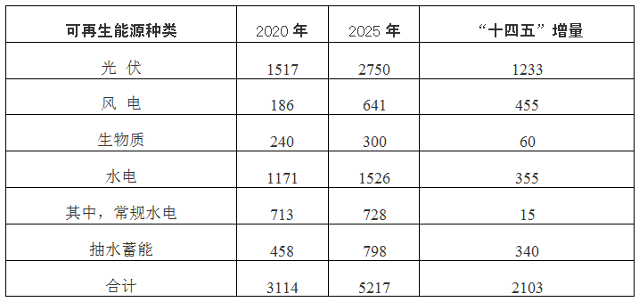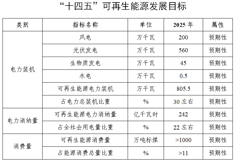 “十四五”期間全省可再生能源發(fā)展目標(biāo)
