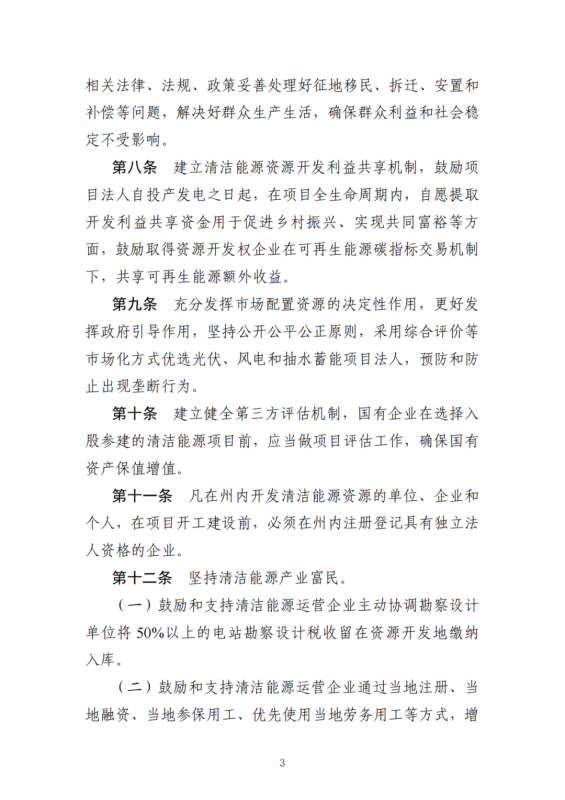 此外,堅持清潔能源產(chǎn)業(yè)富民。鼓勵和支持清潔能源運營企業(yè)主動協(xié)調(diào)勘察設(shè)計單位將50%以上的電站勘察設(shè)計稅收留在資源開發(fā)地繳納入庫。