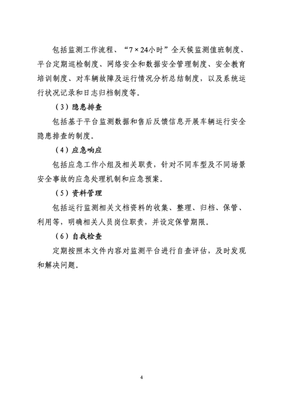 (九)建立隱患車輛排查機制。鼓勵企業(yè)加強車輛運行安全狀態(tài)隱患排查,及時跟蹤和確認長時間離線車輛的安全狀態(tài),妥善處理大面積聚集停放、頻繁報警等存在安全隱患的車輛。