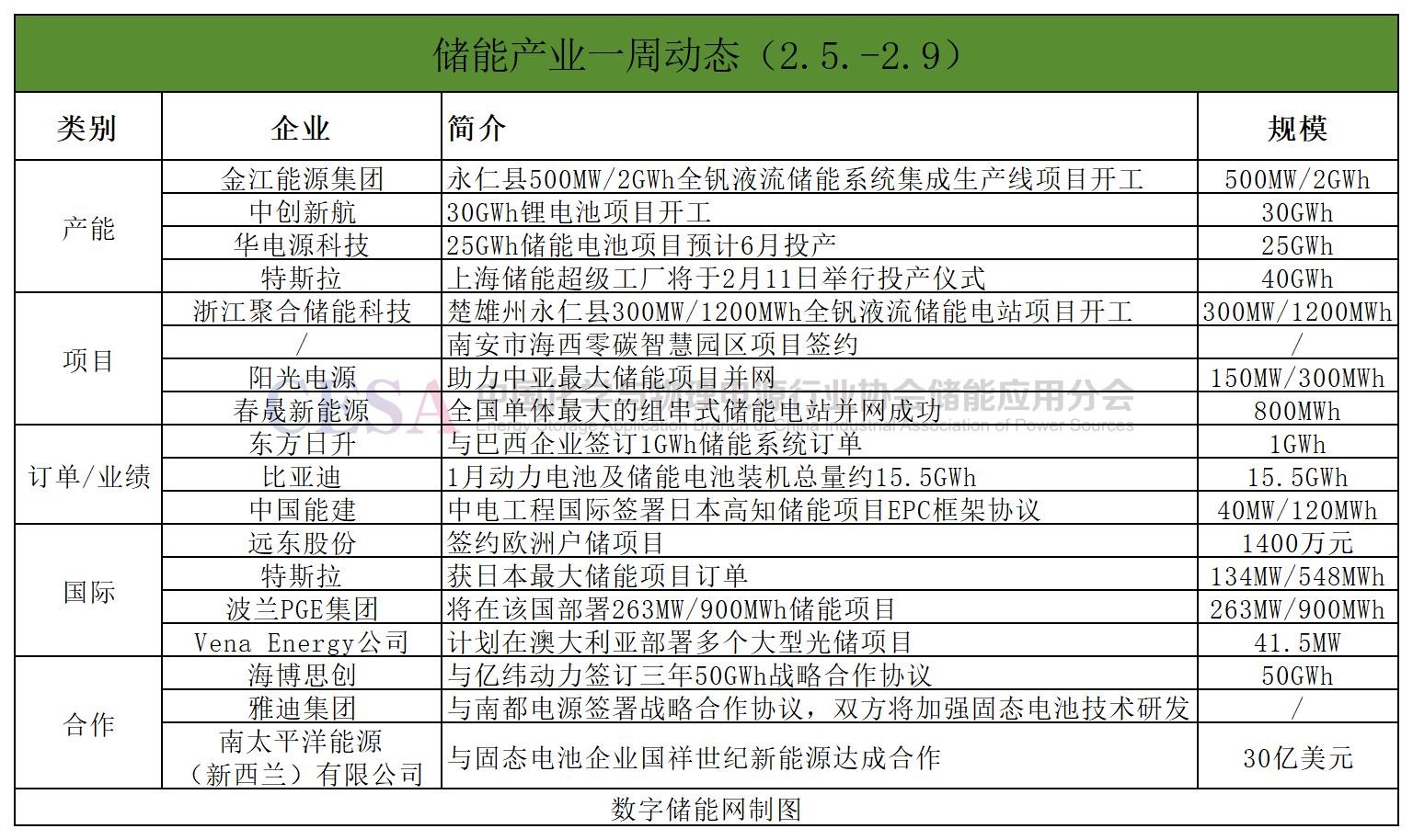 產能方面,永仁縣500MW/2GWh全釩液流儲能系統(tǒng)集成生產線開工;中創(chuàng)新航30GWh鋰電池項目開工;特斯拉上海儲能超級工廠將于2月11日舉行投產儀式;華電源科技25GWh儲能電池項目預計6月投產。