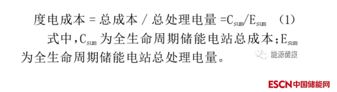 全生命周期度電成本是目前儲(chǔ)能常用的成本衡量指標(biāo)。全生命周期的度電成本也稱平準(zhǔn)化成本(LCOE),計(jì)算公式為儲(chǔ)能電站總成本/儲(chǔ)能電站總處理電量,指在全生命周期內(nèi)對(duì)儲(chǔ)能電站的總成本和發(fā)電量進(jìn)行平準(zhǔn)化計(jì)算得到的儲(chǔ)能成本(何穎源等,2019)。儲(chǔ)能電站總處理電量是儲(chǔ)能裝置每年的儲(chǔ)存輸送返回電網(wǎng)或應(yīng)用端的發(fā)電量。度電成本在評(píng)估儲(chǔ)能技術(shù)經(jīng)濟(jì)性方面具有重要指導(dǎo)意義。其計(jì)算公式如下: