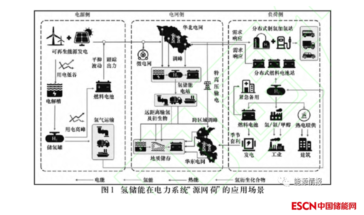 氫儲(chǔ)能分為廣義和狹義兩種,廣義的氫儲(chǔ)能體系是指把電能、化學(xué)能等任意形式的能量轉(zhuǎn)換成氫氣的化學(xué)能,并廣泛應(yīng)用于交通、工業(yè)、建筑、發(fā)電等應(yīng)用場景;狹義的氫儲(chǔ)能體系是“電—?dú)洹姟钡霓D(zhuǎn)換,是指將分布式可再生能源電力或電網(wǎng)中過剩的電力,通過電解水制氫轉(zhuǎn)換成氫氣的化學(xué)能,隨后利用氫氣發(fā)電技術(shù)將氫能再次轉(zhuǎn)換為電力并輸送回電網(wǎng),或運(yùn)輸至用戶端進(jìn)行分布式發(fā)電,通常僅限于發(fā)電領(lǐng)域的應(yīng)用。本文所討論的氫儲(chǔ)能,主要指狹義的氫儲(chǔ)能。