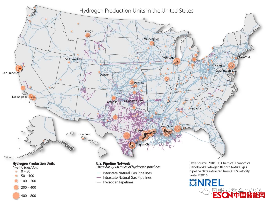 美國(guó)氫氣和天然氣的生產(chǎn)工廠和管道布局圖