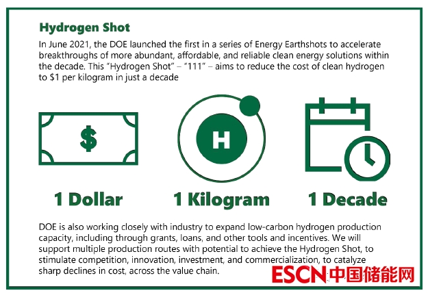 (2)降低清潔氫能成本。2021年推出的 Hydrogen Shot計(jì)劃,目的是促進(jìn)創(chuàng)新和規(guī)?;?,刺激私營(yíng)部門的投資,刺激整個(gè)氫能供應(yīng)鏈的發(fā)展,并大幅降低清潔氫的成本。新的計(jì)劃,還將解決關(guān)鍵材料和供應(yīng)鏈的脆弱性的問題,并設(shè)計(jì)高效、耐用性和可回收性的技術(shù)。