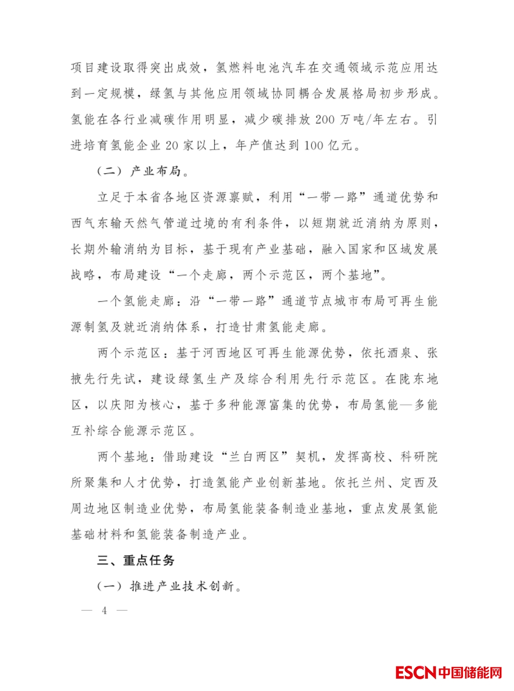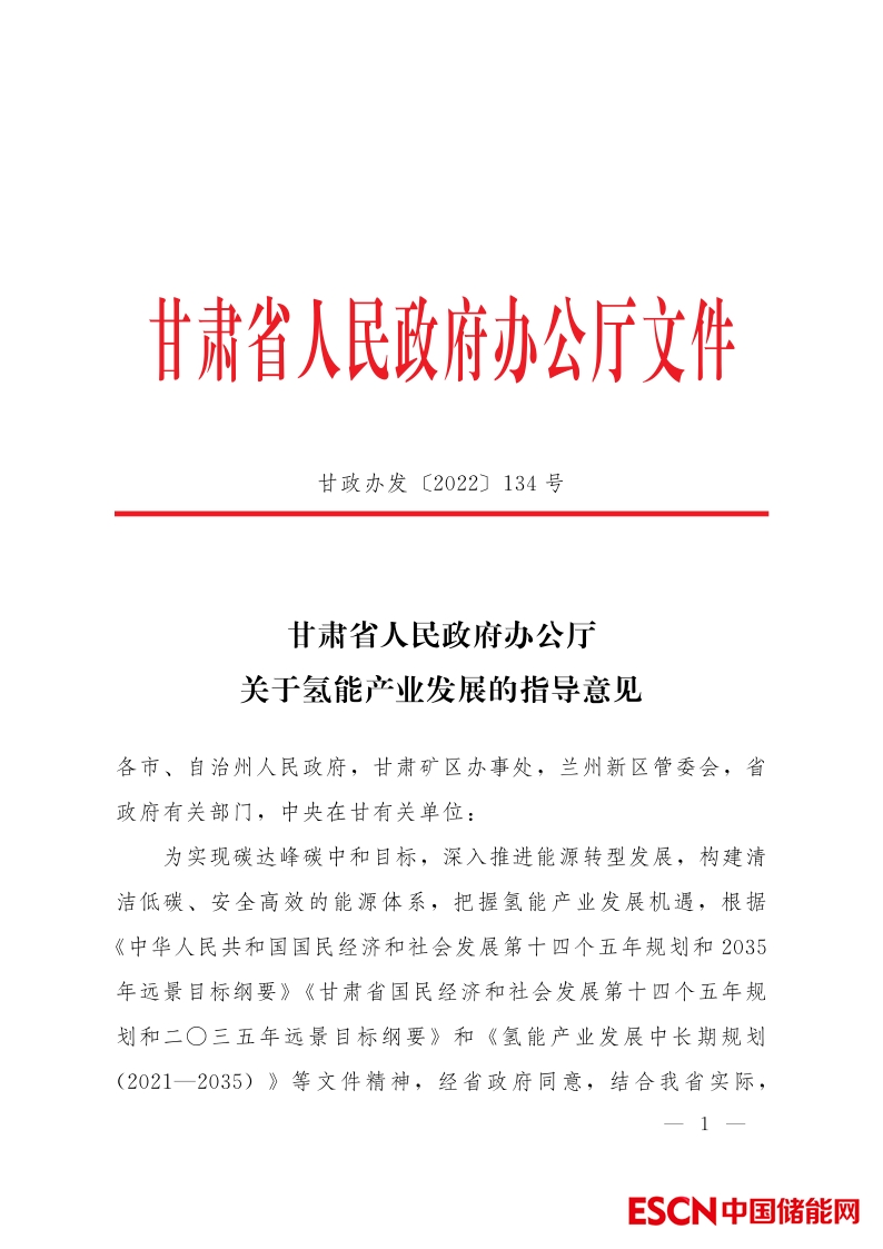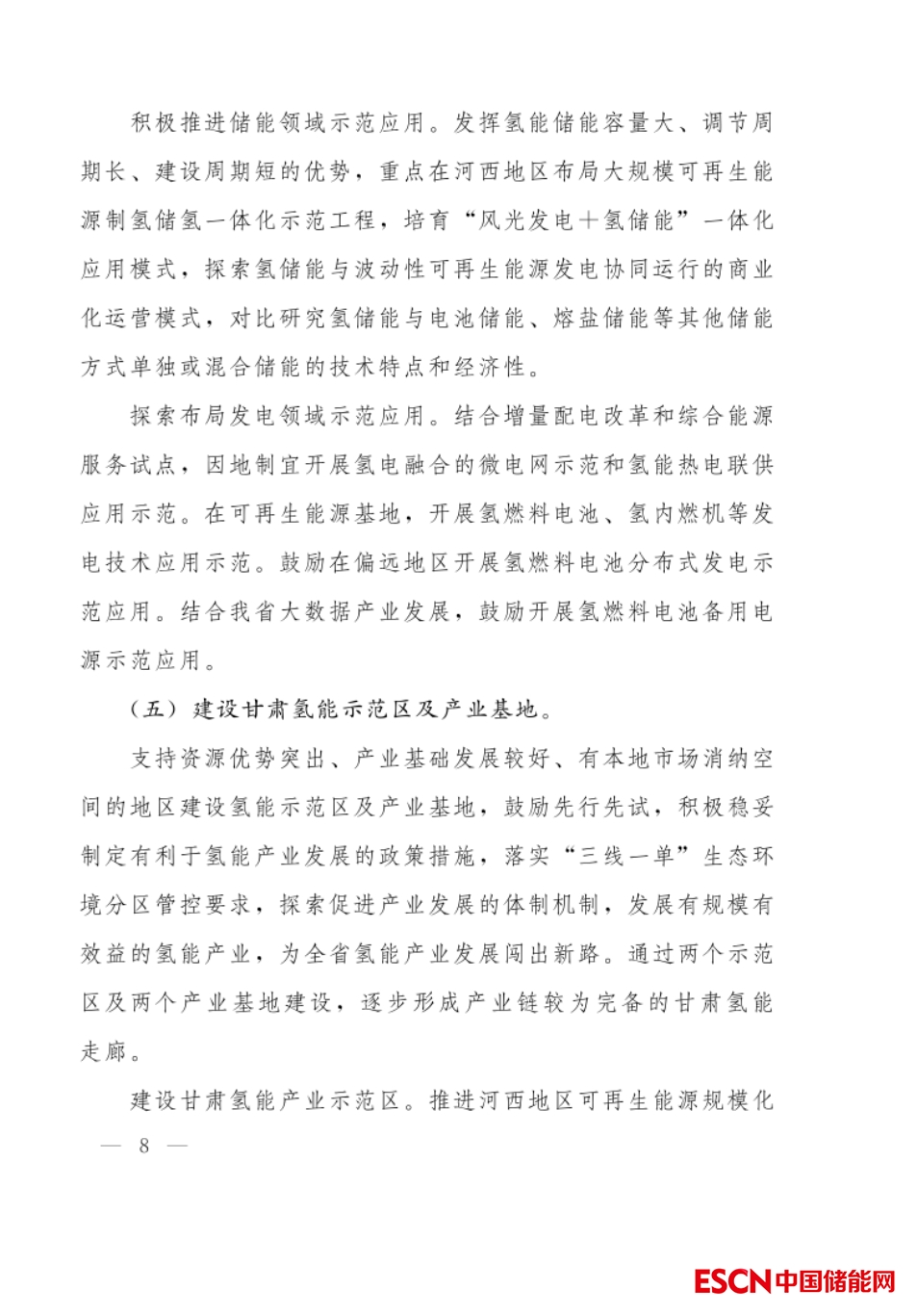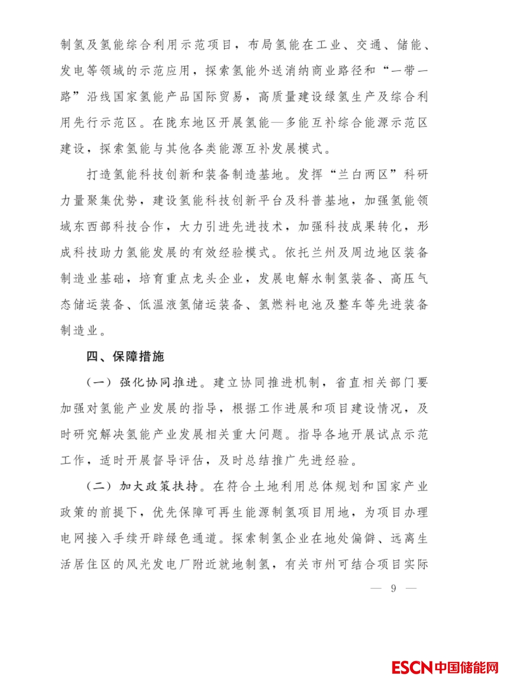 中國儲能網(wǎng)訊:1月3日,甘肅省人民政府辦公廳發(fā)布關(guān)于氫能產(chǎn)業(yè)發(fā)展的指導(dǎo)意見,意見指出,支持在高速公路服務(wù)區(qū)內(nèi)布局建設(shè) “分布式光伏+制氫、儲氫、加氫”一體化示范應(yīng)用。培育 “風(fēng)光發(fā)電+氫儲能”一體化應(yīng)用模式,探索氫儲能與波動性可再生能源發(fā)電協(xié)同運(yùn)行的商業(yè)化運(yùn)營模式,對比研究氫儲能與電池儲能、熔鹽儲能等其他儲能方式單獨(dú)或混合儲能的技術(shù)特點(diǎn)和經(jīng)濟(jì)性。