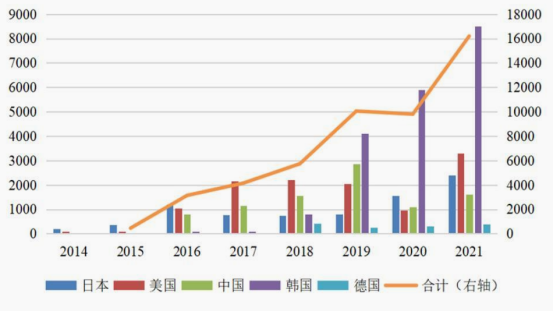 2022年北京冬奧會期間,共有1200多輛氫燃料電池汽車投運,并配備30多個加氫站,這是全球最大的一次燃料電池汽車示范。據(jù)統(tǒng)計,2021年,全球氫燃料電池汽車總銷量1.6萬輛以上,增長幅度達到六倍以上。受強勁補貼政策驅(qū)動,韓國市場延續(xù)了2020年的增長勢頭,全年共售出超8000輛氫燃料電池汽車,約占全球總銷量的一半。