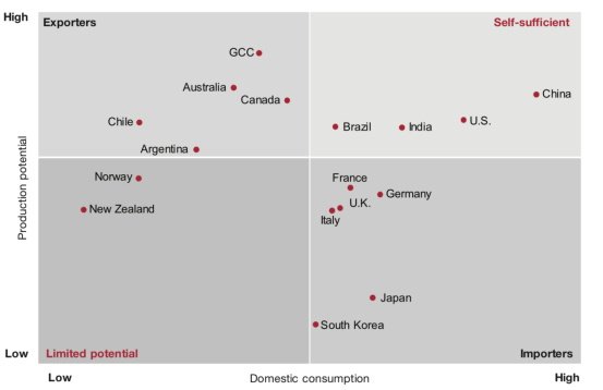 圖1 全球未來綠氫供需情景