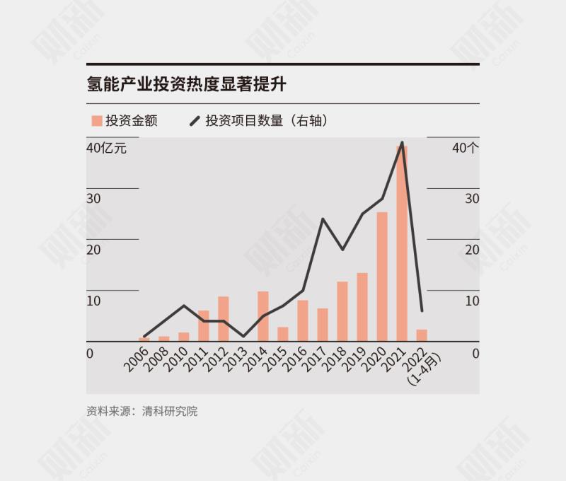 在氫能投資領(lǐng)域,燃料電池是最大的風(fēng)口。根據(jù)清科研究院數(shù)據(jù),2020年,氫能領(lǐng)域一級市場投資額23.35億元,比2019年的13.43億元幾乎翻倍;到2021年,投資額升至38.27億元。截至2022年4月,超過60%的氫能產(chǎn)業(yè)投資事件與燃料電池有關(guān)。