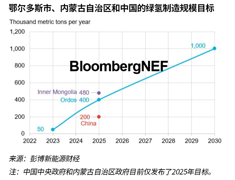 該100萬噸綠氫制造目標(biāo)中,70%將用于合成甲醇、合成氨領(lǐng)域。彭博新能源財(cái)經(jīng)預(yù)期,如果鄂爾多斯實(shí)現(xiàn)全部甲醇產(chǎn)能以綠氫作原料合成,相應(yīng)的綠氫需求將達(dá)到200萬噸/年,是鄂爾多斯2030年目標(biāo)的兩倍。