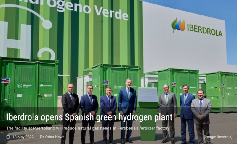 中國儲能網(wǎng)訊:Iberdrola公司在西班牙Puertollano正式開設耗資1.5億歐元的綠色氫氣廠,西班牙國王出席項目投運典禮。