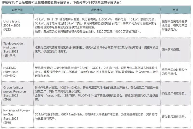 限于篇幅,本文僅列舉了歐洲各地區(qū)氫能示范先發(fā)國家部分有代表性的氫能示范項目,類型完全重復的示范項目不贅述。