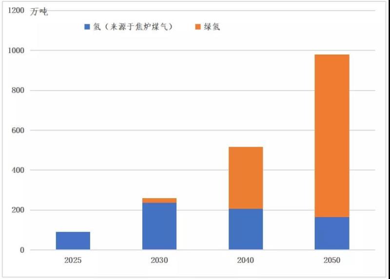 到2050年,鋼鐵行業(yè)將成為工業(yè)中繼化工后的第二大用氫行業(yè)。綠氫經(jīng)生產(chǎn)、儲運后,送到煉鋼廠,生產(chǎn)直接還原鐵,然后在電弧爐中使用直接還原鐵生產(chǎn)鋼。根據(jù)波士頓咨詢公司,到2050年,氫冶金相應(yīng)設(shè)備市場每年可能達到160億至200億美元,我國按照占比60%,市場規(guī)模在800億元人民幣。