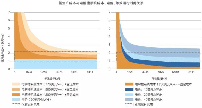 所以實際上綠氫的制造成本必須要綜合考慮電解槽成本、電價和運行時間三個重要的因素。