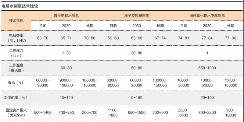 “水電解制氫實際上并不是一個新鮮的技術(shù),而是一個成熟了幾十年的技術(shù)。最早來源于航天領(lǐng)域,用于給宇航員制氧,產(chǎn)生了氫氣這樣的副產(chǎn)品。”上述氫能專家說,“目前的水電解技術(shù)路線中,堿水電解和質(zhì)子交換膜技術(shù)應(yīng)用最多。其中堿水電解更加成熟、成本更低。但是在安全和品質(zhì)上還存在問題,產(chǎn)量、效率也有限。質(zhì)子交換膜技術(shù)更簡單,理論上效率更高,但是成本也更高,部分關(guān)鍵設(shè)備還需要進(jìn)口?!?