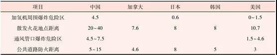 b)我國標準中對加氫站安全間距的要求明顯大于國外,部分指標是國外對應指標的幾倍甚至十倍。