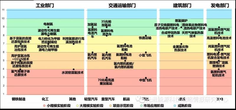 圖2 氫能終端應(yīng)用各項(xiàng)技術(shù)成熟度