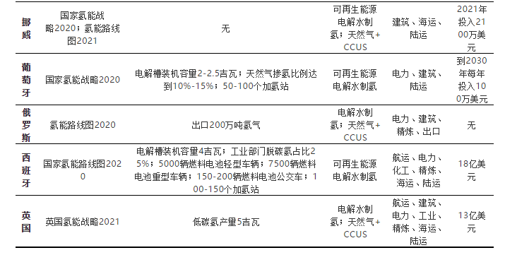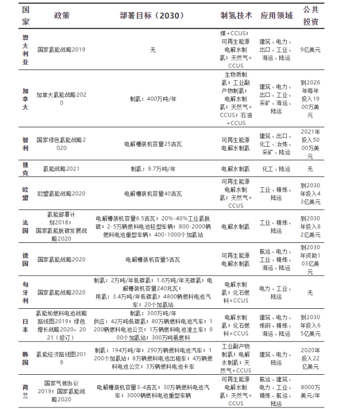 表1 不同國(guó)家氫能戰(zhàn)略布局情況