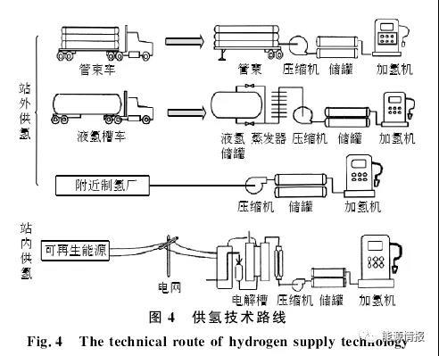 氫氣加注環(huán)節(jié)的經(jīng)濟性直接影響氫氣的成本。當前氫燃料電池汽車的總體擁有成本中,燃料電池、氫瓶等部件占50%,用氫成本占25%。隨著關鍵材料、部件的規(guī)模化生產(chǎn),車用燃料電池系統(tǒng)成本會大幅下降。我國氫氣的成本主要在制氫與儲運環(huán)節(jié),其中,制氫占總成本的30%~50%,儲存和運輸占35%~55%,加注環(huán)節(jié)約占15%。當氫氣需求較少時,站外長管拖車運氫可以滿足多數(shù)的運輸加注需求;當氫氣需求較多,達不到管道建設規(guī)模時,分布式綠色制氫站內供氫將會稱為未來發(fā)展的趨勢。