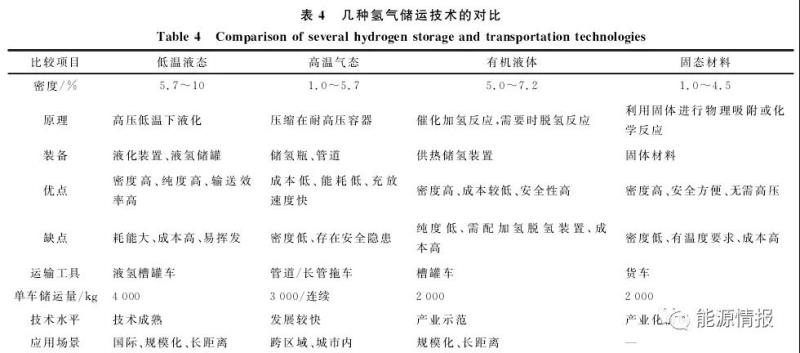 氫儲能適用于大規(guī)模儲能、長周期能量調節(jié)、新能源消納、削峰填谷、熱電聯(lián)供,備用電源等諸多場景。儲氫技術主要包括:低溫液態(tài)儲氫、高壓氣態(tài)儲氫、有機液體儲氫和多孔材料及金屬合金等物理類固態(tài)儲氫等[1,3,21,27]。幾種氫能儲運技術的對比如表4所示。