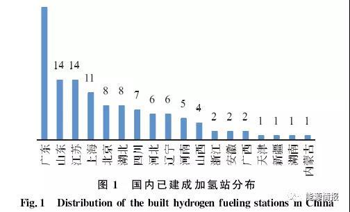 據(jù)不完全統(tǒng)計,截至2020年12月31日,全國在建和已建加氫站共181座,已經(jīng)建成124座,其中2020年建成加氫站55座,已建成的加氫站分布情況如圖1所示。在建加氫站57座,主要集中在廣東、山東、河北等地。
