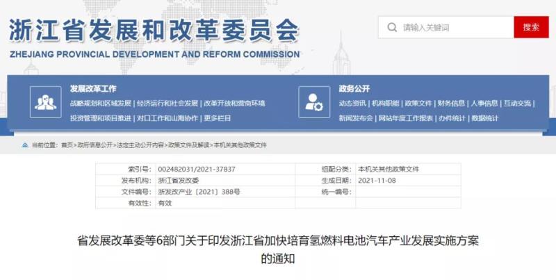 11月8日,浙江省發(fā)改委等6部門印發(fā)了《浙江省加快培育氫燃料電池汽車產(chǎn)業(yè)發(fā)展實施方案》(以下簡稱“《方案》”),氫云鏈獲悉,此次印發(fā)的文件與7月發(fā)布的《浙江省加快培育氫燃料電池汽車產(chǎn)業(yè)發(fā)展實施方案(征求意見稿)》和10月發(fā)改委的反復(fù)文件的內(nèi)容大體一致。