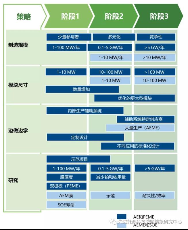 圖3 電解槽規(guī)模化部署三階段降低成本策略的里程碑