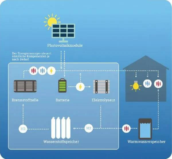 HPS Picea(R)由電池、電解槽、氫燃料電池和儲(chǔ)氫裝置組成,將能源行業(yè)中一些最有希望的新發(fā)展組合到了一起,從而實(shí)現(xiàn)了前所未有的能源自主性消費(fèi)產(chǎn)品:全年100%離網(wǎng)的清潔無CO2能源,此外,利用廢熱可節(jié)省多達(dá)50%的供熱成本。