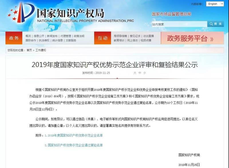 11月25日,2019年度國(guó)家知識(shí)產(chǎn)權(quán)示范企業(yè)和優(yōu)勢(shì)企業(yè)公示名單出爐,鉅威動(dòng)力入選成為“國(guó)家知識(shí)產(chǎn)權(quán)優(yōu)勢(shì)企業(yè)”。