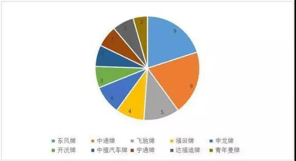 上文提到,從2018年以來,共有17家廠商共51款燃料電池汽車投產(chǎn)。在投產(chǎn)車型數(shù)量上,東風(fēng)汽車的東風(fēng)牌、中通客車的中通牌、佛山飛馳汽車的飛馳牌分別以9款、9款、5款在17家車企中脫穎而出。
