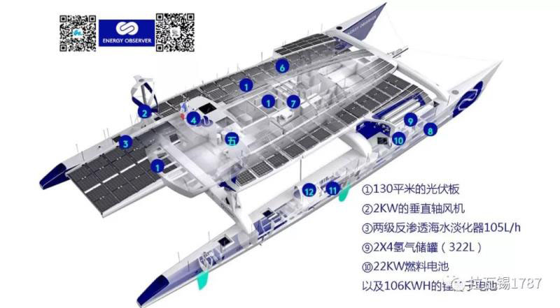 Energy Observer擁有革命性的能源架構(gòu),是世界上第一艘能夠利用可再生能源從海水中生產(chǎn)氫氣的船舶。這是能源獨立真實的實驗室,通過在惡劣自然條件下的測算優(yōu)化,最終允許其拓展到陸地上應(yīng)用。