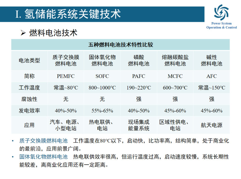 再說氫的利用,現(xiàn)在比較多的主要是燃料電池,通過燃料電池發(fā)電來用氫。燃料電池主要問題是成本比較高,技術不是完全過關。因此我們綜合考慮,從制氫、儲氫到用氫這樣幾個環(huán)節(jié),它的綜合效率如果我們用電解水制氫的話,綜合效率也就45%。因此我們說在火電廠如果我們配備氫儲能的話,從經(jīng)濟性和實用性角度來看都是不可行的。