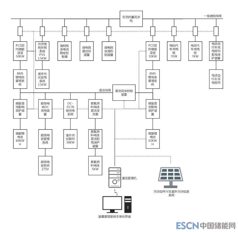 在保證系統(tǒng)運(yùn)行安全可靠,高質(zhì)量地提供充電服務(wù)的基礎(chǔ)上,系統(tǒng)設(shè)置了較強(qiáng)的檢測(cè)與研究功能。包括多能互補(bǔ)控制研究、能量分配控制研究、交直流混合控制研究、儲(chǔ)能變流器控制和與面向電動(dòng)汽車應(yīng)用的微網(wǎng)結(jié)構(gòu)與組元優(yōu)化研究等;系統(tǒng)還將為制氫劑及供氫系統(tǒng)與燃料電池對(duì)接運(yùn)行性能優(yōu)化、n型高效異質(zhì)結(jié)雙面太陽(yáng)電池運(yùn)行輸出特性跟蹤和晶體硅增強(qiáng)石墨基負(fù)極的三元鋰離子電池運(yùn)行性能跟蹤提供實(shí)用環(huán)境平臺(tái)。系統(tǒng)還具備良好的開放性,支持本院和協(xié)作單位進(jìn)行二次開發(fā)優(yōu)化。