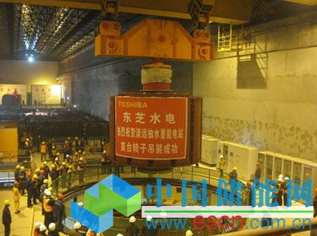 中國儲(chǔ)能網(wǎng)訊:12月25日上午11時(shí)30分,由東芝水電設(shè)備(杭州)有限公司設(shè)計(jì)制造的廣東清遠(yuǎn)抽水蓄能電站首臺(tái)1號(hào)機(jī)組轉(zhuǎn)子,經(jīng)過75分鐘的平穩(wěn)緩慢運(yùn)行、準(zhǔn)確定位后,在500噸橋機(jī)的安全運(yùn)行下,順利吊裝就位。這標(biāo)志著清遠(yuǎn)抽水蓄能電站首臺(tái)356MVA-429r/min的可逆式發(fā)電電動(dòng)機(jī)安裝進(jìn)入總裝階段,為實(shí)現(xiàn)該電站首臺(tái)機(jī)組投產(chǎn)發(fā)電目標(biāo)奠定了堅(jiān)實(shí)的基礎(chǔ)。