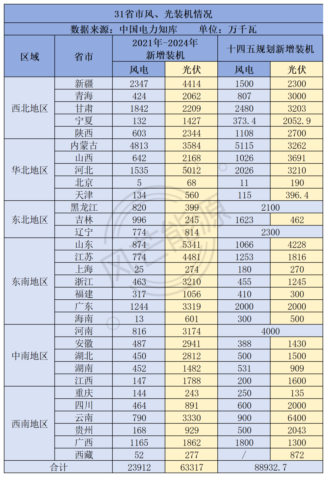 分地區(qū)來看,內(nèi)蒙古、河北、新疆及山東4省風(fēng)、光累計(jì)裝機(jī)突破1億千瓦;超5成地區(qū)風(fēng)、光裝機(jī)突破4000萬千瓦;8成地區(qū)新能源裝機(jī)超1000萬千瓦。