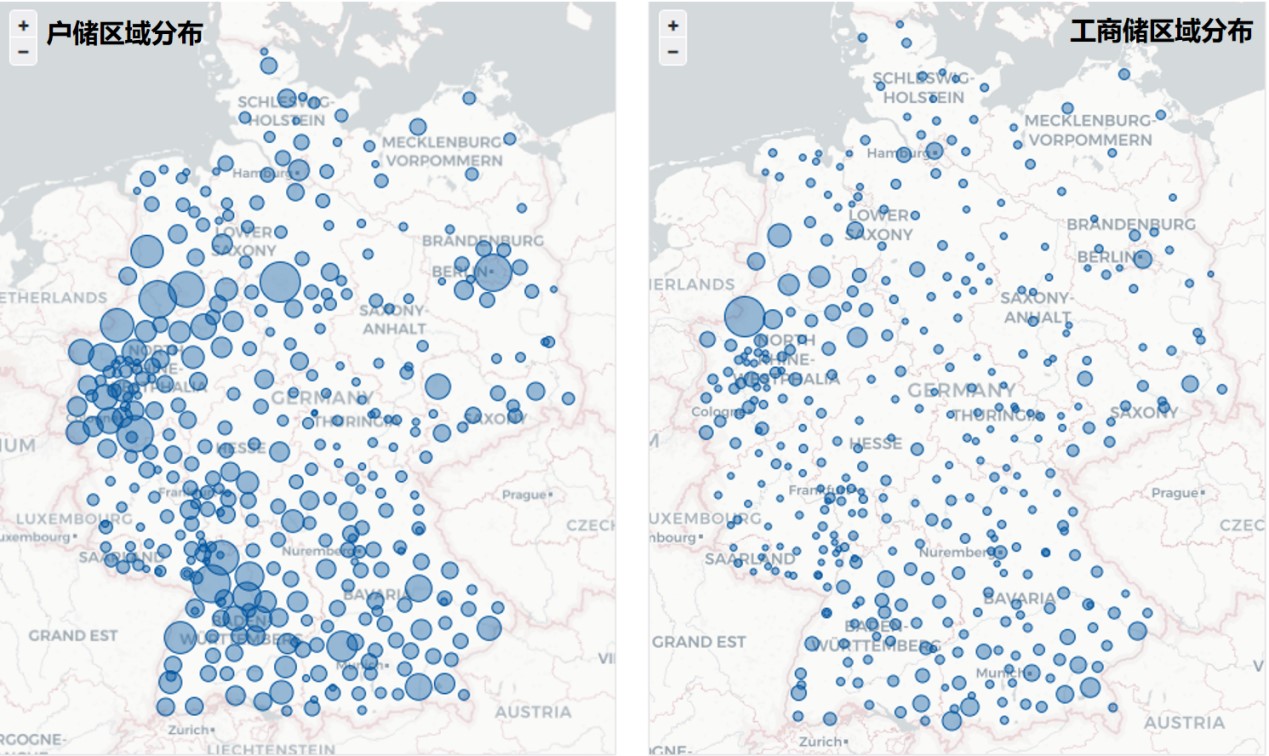 圖 德國戶儲和工商儲電池儲能區(qū)域分布