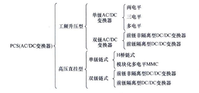 工頻升壓型單級PCS以其工作效率高和結(jié)構(gòu)簡單的優(yōu)點被廣泛應(yīng)用。然而,它也存在局限性,如電池組容量低和電壓選擇靈活性差。此外,當(dāng)PCS直流側(cè)出現(xiàn)短路故障時,易導(dǎo)致電池組受到較大電流沖擊,存在安全隱患。盡管如此,單級PCS仍可根據(jù)輸出電壓電平分為兩電平、三電平或多電平。隨著電平數(shù)的增加,可以進(jìn)一步提高PCS的直流側(cè)電壓等級和輸出電能質(zhì)量。